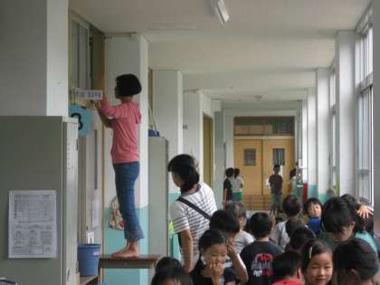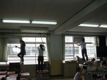 長い休みの後ということもあり,教室や廊下もたくさんのほこりが積もっています。子ども達は大掃除で頑張って綺麗にするのですが,どうしても子ども達の手の届かないところもあります。そんな悩みも,毎年恒例になってる,PTAの方々による大掃除のお手伝いが,大変助かっています。