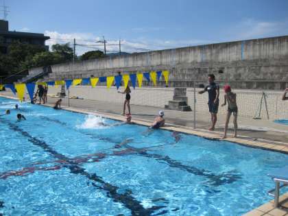 体育科は,プールでの学習です。今日は,30°をこえる気温だったのでちょうどよかったです。