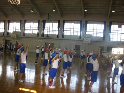 2年生も,運動会でダンス(演技)をします。2年生は,競技の前の短いダンスではなく長い時間本格的に演じます。それだけに連日の練習です。その効果もあり,だいぶんうまくなってきました。