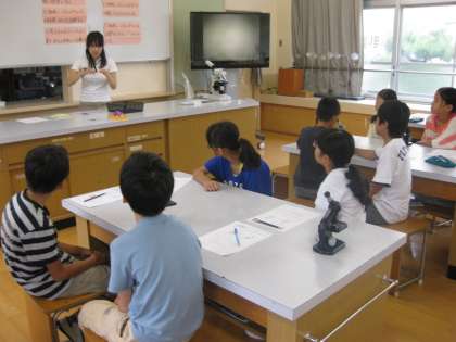 5年生の今日の1日は,漢字辞典の使い方や,理科室で顕微鏡をつかってアサガオの花粉を見たり,アリさんと一緒に英語の学習をしたりしました。たくさんの保護者の方に見ていただきました。