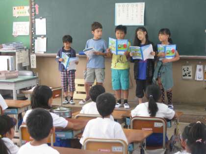 1年生の教室にいって,運動会のことをお話する時間になりました朝練習した成果が発揮されたのでしょうか?