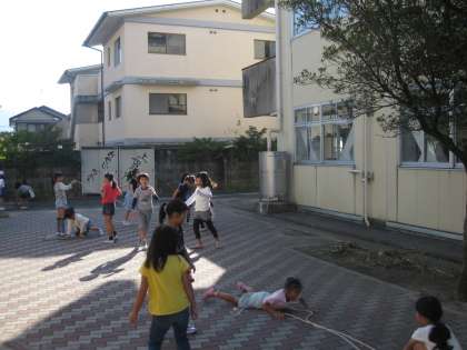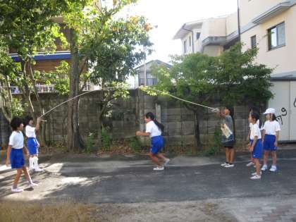 ウサギ小屋の近くでは,縄跳びが流行っているようです。ちょっと変わった跳び方(ルール)をしてみんなで楽しんでいる学年もありました。