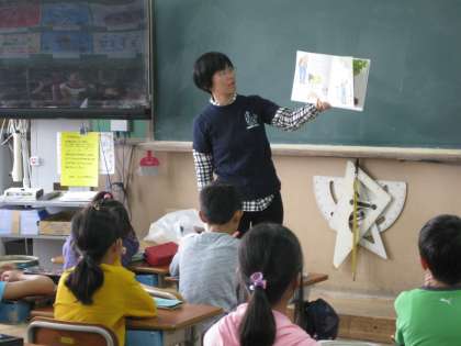 4年生の教室に行く途中の,2階と3階のお踊り場で読み聞かせの声が聞こえてきました。感情を込めたしっかりした声が教室から聞こえてきたのです。4年生達は,その素晴らしい朗読を聞き入っていました。ありがとうございました。