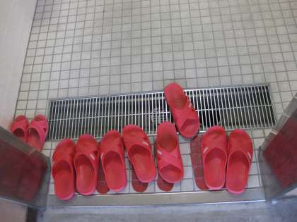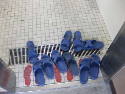 4年生のトイレは・・・こんな感じです。スリッパが大きいので横1列に並びにくいようです。