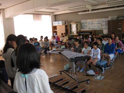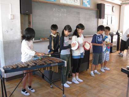 音楽室から怪しげな音楽が聞こえてきました。文部省唱歌ではないようです。音色につられて音楽室に行ってみると,少し変わった音楽会が開かれていました。創作した曲をグループごとに披露していました。
