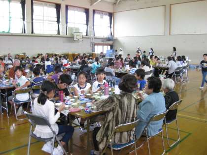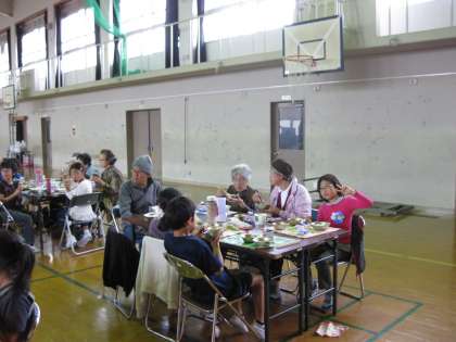 いよいよ一緒に給食をいただきます。今日の献立は,筑前煮とかき玉汁です。ご高齢の方々にも食べやすいメニューだったかなと思います。食べ始めたときは,ちょっと緊張気味の4年生でしたが,時間がたつにつれてうち解けてお話しができるようになりました。
