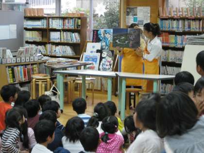 10月のおはなしの会が,3時から図書館で開かれました。4〜50人の低学年の子ども達が熱心にお話しに耳を傾けていました。読書の秋です。この様なことをきっかけにして,読書に親しんでほしいと思います。
