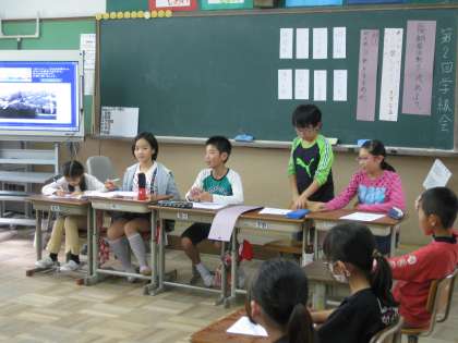 5年生では,クラスをより楽しく,そして友達同士の絆を深めるために,楽しい係活動を設置することになりました。先生が司会をするのではなく,子ども達が司会をしたり黒板書記をしたりします。