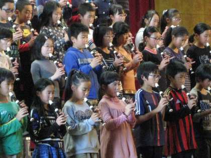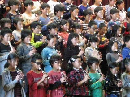 サンバのリズムで5年生の音楽会は始まりました。楽器や声が綺麗に重なり合い、素晴らしいハーモニーを聞かせてくれました。今日の素晴らしい秋晴れの空に吸い込まれていくような、演奏と合唱でした。これからも力を合わせてがんばってください。
