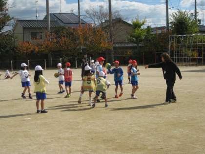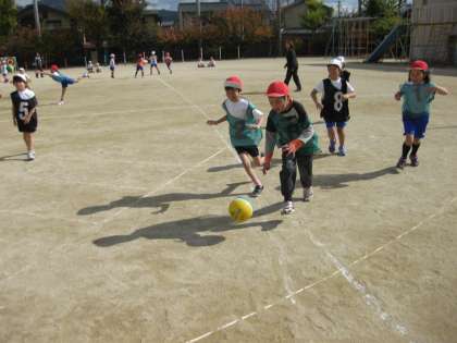 中学生が準備してくれたコートで2年生のパスゲームが始まりました。