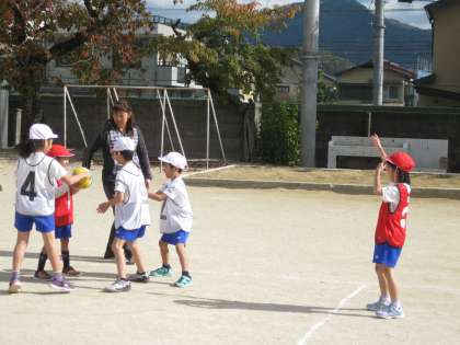 スペースが空いているところに、走りこむことができる子もいます。これからゲームを重ねていくといろいろな動きができるようになります。がんばってください!!