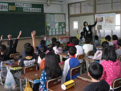 学校教育目標の「自分のおもいや考えを いきいきと表現できる子の育成」を目指して、金曜日に4年生で授業研究会がもたれました。