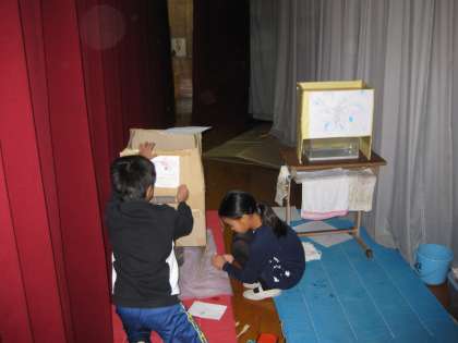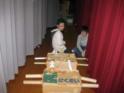 体育館の舞台の上もすごいことになっていました。誰がこんなアイデアを出すのでしょうね・・・?