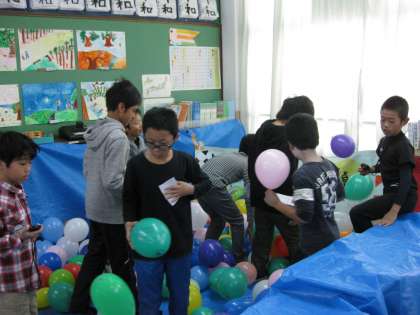 たくさんのお客さんが来て、ブースをしている子どもたちもうれしそうです。中には、看板を持って宣伝しているクラスもありました。