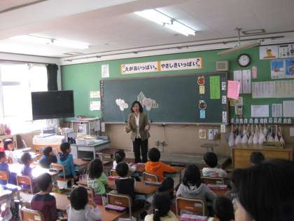今日は、参観・懇談会の低学年の日になっています。1年生は、道徳の授業です。