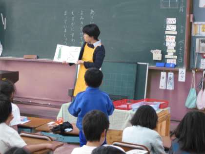 1年生の教室では、クリスマスを題材にした絵本を読んでいただきました。