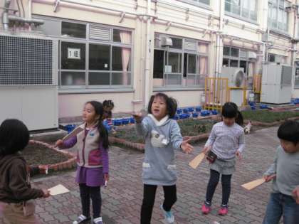 竹馬の次は,羽根突きです。コンコンと心地のよい音がします。竹馬よりは,簡単なようです。