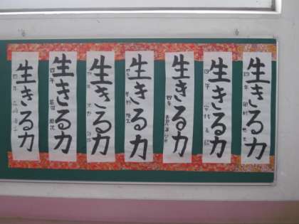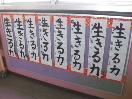 4年生の習字が廊下や階段の踊り場にある掲示板にはりだされていました。どの子も,力強く書けています。感心しました。