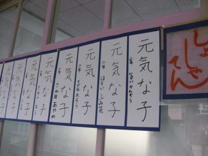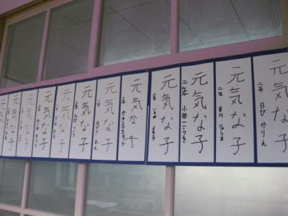 2年生は,フェルトペンで「元気な子」と書きました。本当に元気な字で書けていますね。