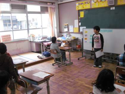元気のいい声が1組の教室から聞こえてきました。国語の学習をみんなでしていました。自分のおもいを表現して,質問に答えます。自分が好きな季節を,理由付けしてしっかりとお話しができました。