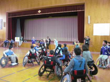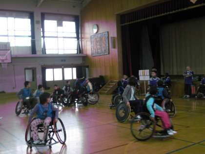 2時間目に,車いすからシュート練習をしていた4年生ですが,3時間目にもう一度のぞいてみると,担任の先生も入られて試合の真っ最中でした。パスをつないでシュートまで持って行くには難しそうでした。お疲れ様でした。