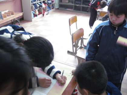 どうやら国語の授業の一環のようです。床下暖房をつけてほしいという意見を書いた班もあれば,予算のこともあるのでスリッパを置いてほしいというような現実的な意見もありました。本当によく考えた要望もありました。