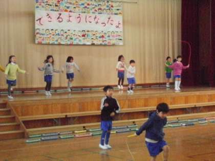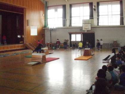 体育の技も 跳び箱・マット・なわとび等 うれしそうに技を披露していました。