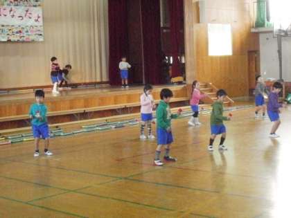 むかし遊びは お手玉・羽根つき・こま・竹馬やけん玉をしました。難しい技ができる子も多くいました。みんなで 楽しく練習すれば 上達するのも早いですね。