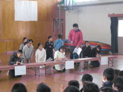 給食委員会の子から,ルール説明を受けてリレー大会が始まりました。
