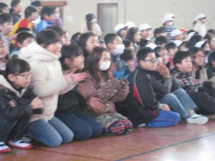 出場しない子は,必死なって応援しています。こんな場面で,高学年になると,ちょっと冷めた目で見る子もいるのですが,上賀茂の子ども達は,精一杯の応援を送っています。こんなところが,上賀茂小学校の子ども達の良さですね。