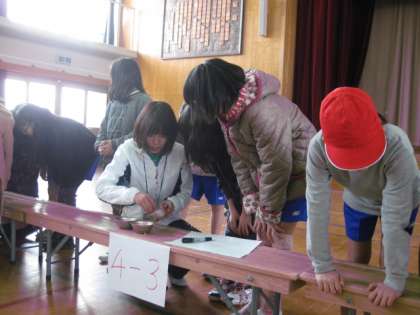 制限時間がきて,担任の先生が数を数えだしました。心配そうに覗き込むみこむ子ども達。応援の子ども達も,同じ気持ちで結果を待っています。