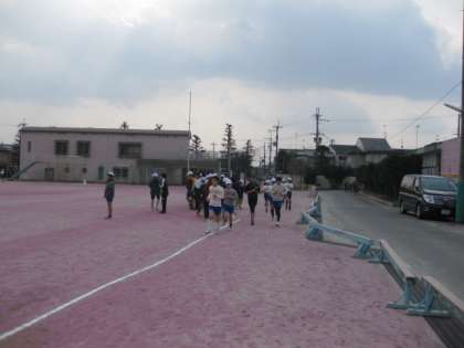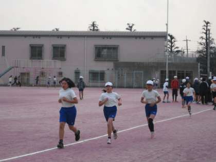 4時間目は,6年生がマラソン大会を行いました。黙々と自分の目標に向かって走っている子や,ゆっくりと自分のペースを守って走っている子もいました。