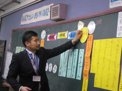 2年生の子ども達も,何回か話合い活動をしているので,自分たちの力で授業を進めています。当日は,多くの参加者がおられたので少し緊張気味でした。