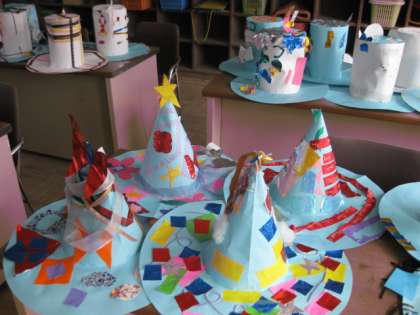 1年生が作っていたかわいい帽子は,ほぼ完成したクラスが多いようです。生活科ルームに置いてあります。後は,飾ってもらうのを待つだけです。