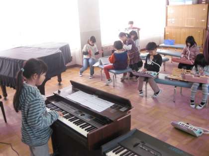 音楽室からとても綺麗な合奏の音色が聞こえてきました。高学年が練習をしているのかな?と思って見に行くと,なんと2年生でした。上手に演奏ができていたので感心しました。