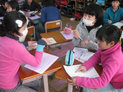 4年生は,この1年間に総合的な学習の時間に学習してきたことを,みんなに呼びかけたり,自分たちがしていきたいことをポスターにして発表しようとしています。上賀茂社会福祉協議会の方々のご協力により,とても貴重な体験を積んできたので,発表の材料はいっぱいありそうですね。