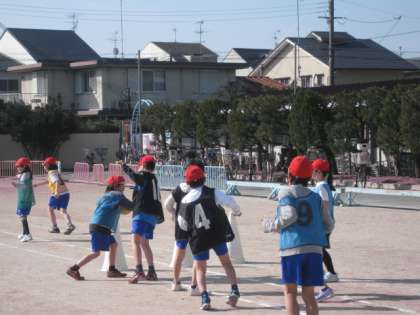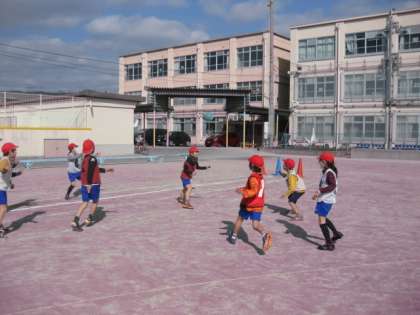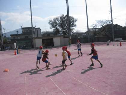 空いているスペースに素速く動き,相手のマークを外す動きができるようになってきました。回を重ねるごとに動きがよくなっています。大人から見れば当然の動きですが,子ども達は,実際に体験を通して体得していきます。