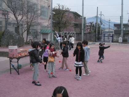 7日の土曜日に,上賀茂少年補導委員会主催の「もちつき大会」がありました。小雨模様の空でしたが,始まる頃になったら雨もやみました。毎年,おやじの会のメンバーもきていただき,子ども達の遊びのお手伝いをされています。