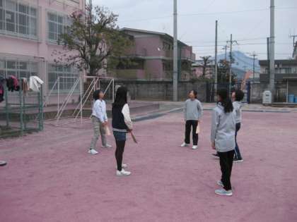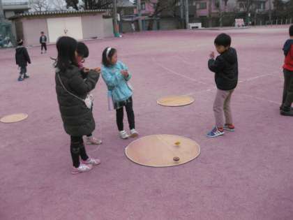 お餅つきの準備ができるまで,コマ回しや竹とんぼ,そして羽根突き等をしてたくさん遊びました。