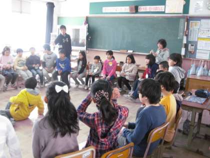 12日の木曜日に上賀茂幼稚園の園児達をお招きして,5年生と交流会をしました。ゲームをしたり,絵本を読んだりして楽しい一時を過ごすことができました。