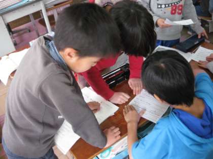グループに分かれて,教書以外のどうぶつの赤ちゃんのことを調べて,発表会を開くようです。今日は,その練習を一生懸命にしています。