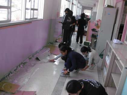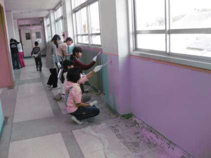 女の子は,3階の廊下の壁を綺麗にペンキで塗りました。黙々とペンキ塗りをしている姿に感心しました。