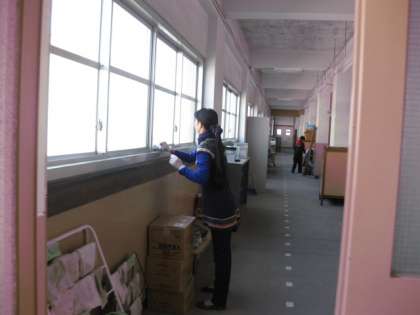 今日は,26年度最後の日ですので,教室や校舎を徹底的に綺麗にしました。PTAの方々にもお手伝いいただき,丁寧に掃除をしました。