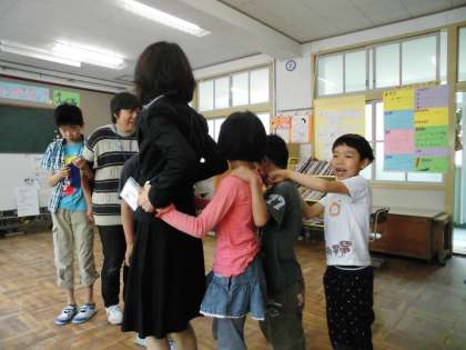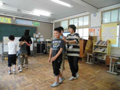1組の教室から何やら楽しそうな音楽や声が聞こえてきました。音楽「みんなで歌おう・奏でよう・踊ろう」で楽しい時間を過ごしていました。