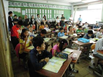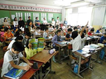 4年生の教室では,何やら『地図帳』とにらめっこ。地図のことなら何でも知っている「地図マスター」をめざすのだそうです。頑張れ4年生!