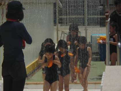 そんな中,今年度のプール開きをし,低学年の子ども達が,低水位のプールで気持ちよさそうに活動していました。ワニになったりカエルになったり・・・とても楽しそうでした。