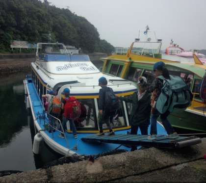 子どもたちは 順調に賢島に着きました。今から船に乗り換え「みさきの家」に向かいます。船からは,英虞湾のきれいな景色を見ることができます。