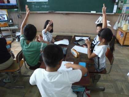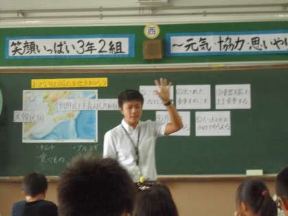 10日(木)の5時間目に,3年2組の教室で,「おとなりの国の文化を知ろう」というテーマの授業を公開し,教職員で研修を深めました。