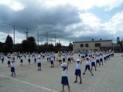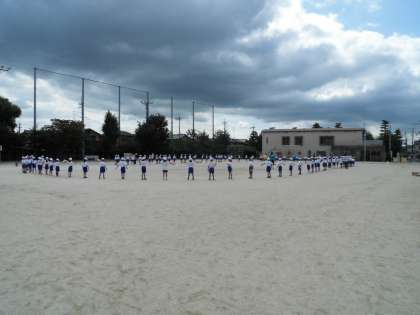 手に持ったペットボトルの音が、運動場に鳴り響いています。