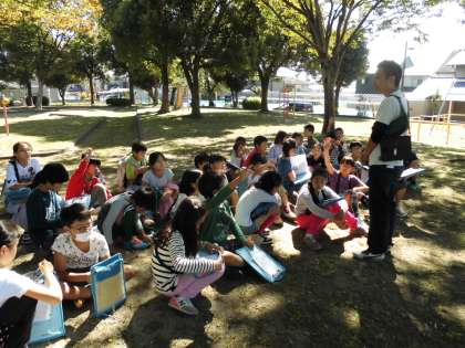 グループでの標識探しを終え、穂根束公園に集まった子どもたちからは次のような感想が出ていました。